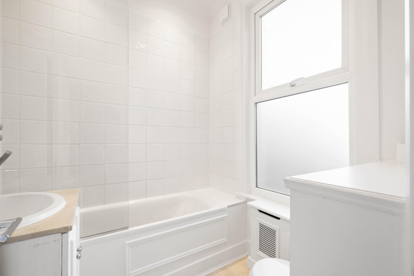 A well presented, high specification one bedroom flat located on the first floor of this converted period house benefitting from a particularly attractive reception room, with extensive bespoke joinery and lovely high ceilings, separate galley kitchen, lovely bathroom and charming rear bedroom.