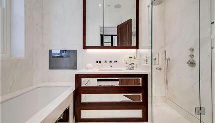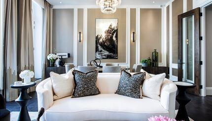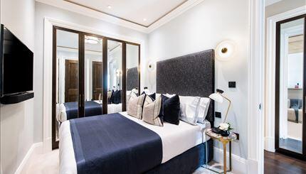 This elegant apartment offers impressive entertaining spaces and comprises a grand reception room, master bedroom with; an ensuite, walk-in closet and private balcony via French doors, a guest bedroom with an ensuite bathroom, a fully integrated kitchen that leads onto a private balcony and a guest powder room. Smart TVs with Sonos soundbars.