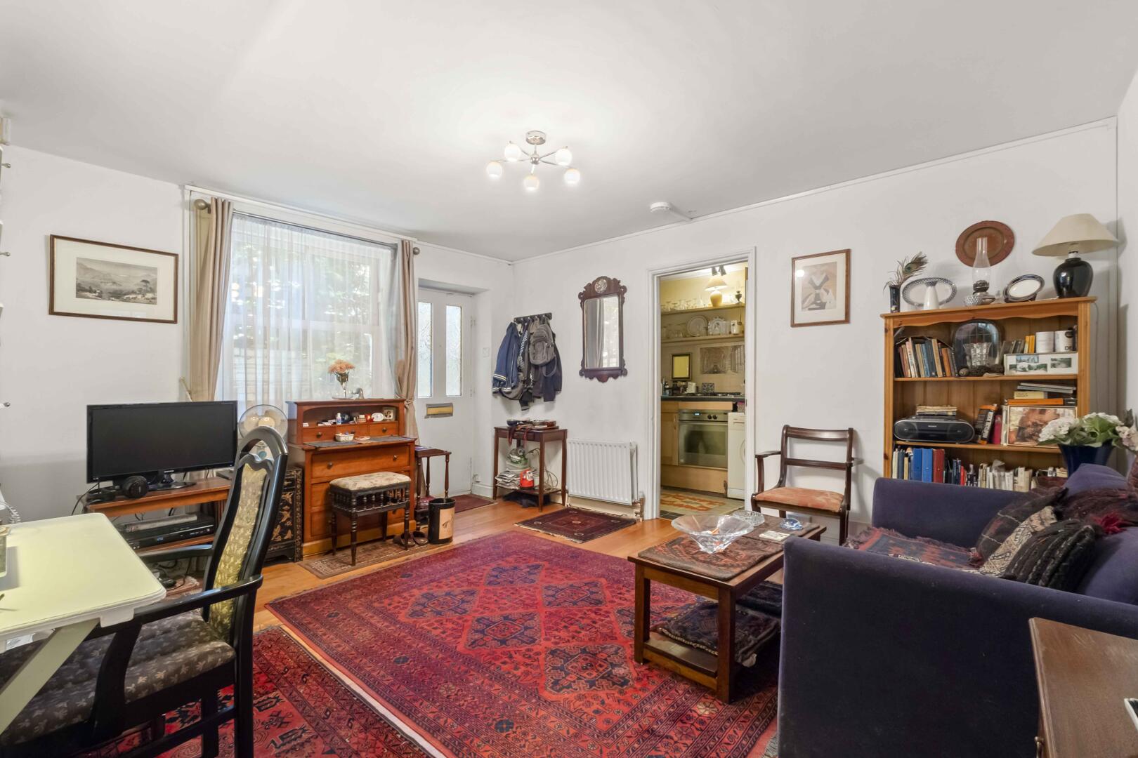 This unusual secluded property offers over 408 sq ft [38 sq m] of internal accommodation, in need of updating, includes a useful vault and a charming, much loved, south west facing private patio/garden with direct access on to Stanbridge Road.