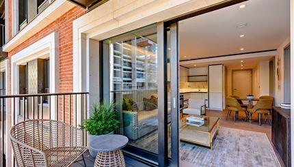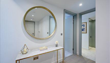 A luxurious interior designed 3 bedroom 2nd floor apartment set over 1023 SqFt comprising a large open-plan reception room leading onto a private balcony. The fully integrated kitchen has appliances from Siemens and Miele including oven and induction hob, large fridge freezer, dishwasher and wine chiller all inset into composite stone work tops. The whole apartment also benefits from comfort cooling.